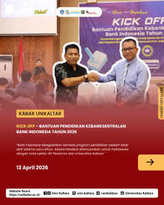 Tarakan, Senin 13 April 2026 - Rektor Universitas Kaltara (Unikaltar), Dr. Didi Adriansyah, S.TP., M.M., menghadiri kegiatan kick off bantuan pendidikan kebanksentralan Bank Indonesia Tahun 2026. Kegiatan tersebut dihadiri oleh sekitar 50 Mahasiswa Unikaltar bersama dengan staf kemahasiswaan Unikaltar. Kegiatan kick off tersebut dilanjutkan deng... Read More