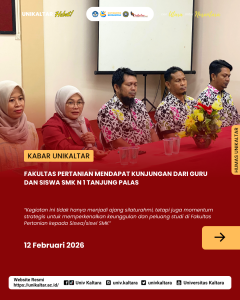 Fakultas Pertanian Universitas Kaltara Jadi Inspirasi: Kunjungan SMK N 1 Tanjung Palas Sekaligus Promosi Dunia Akademik Pertanian Fakultas Pertanian Universitas Kaltara (Unikaltar) mendapat kunjungan dari guru dan siswa SMK Negeri 1 Tanjung Palas jurusan Agribisnis Pengolahan Hasil Pertanian. Kegiatan ini dihadiri langsung oleh Dekan Fakultas Pe... Read More