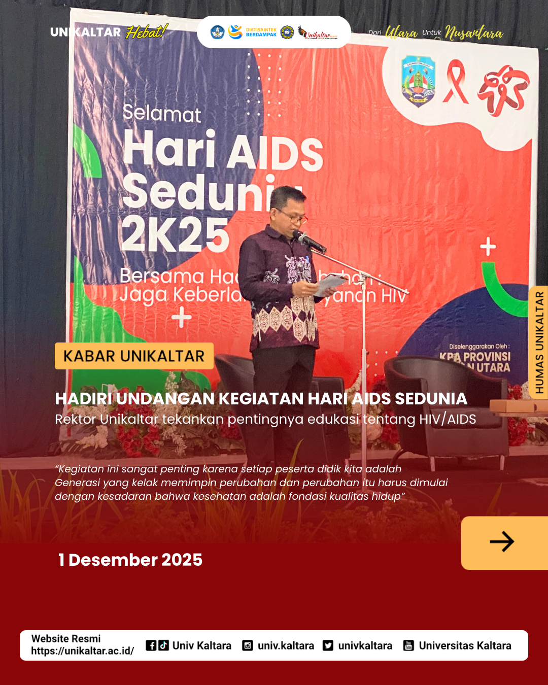 Tanjung Selor, 1 Desember 2025 – Rektor Universitas Kalimantan Utara (Unikaltar) menghadiri kegiatan Peringatan Hari AIDS Sedunia yang digelar di Ge... Selengkapnya