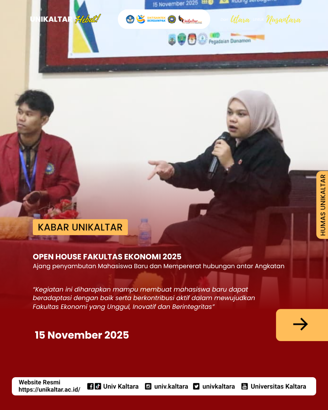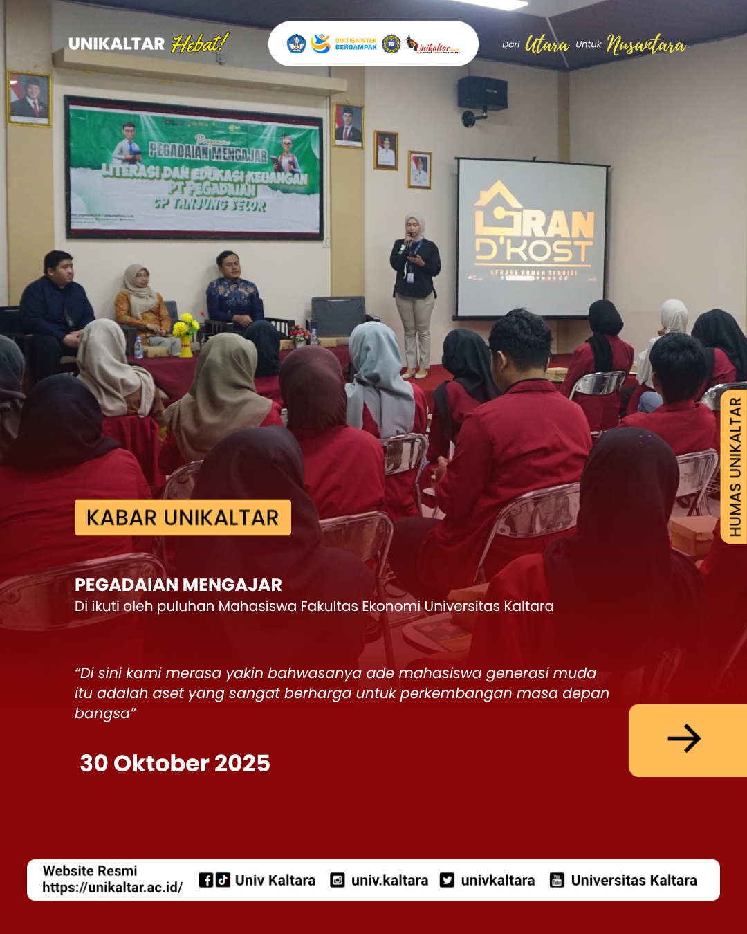 Kamis, 30 Oktober 2025 - Fakultas Ekonomi Universitas Kaltara (Unikaltar) bekerjasama dengan Pegadaian cabang Tanjung Selor melaksanakan kegiatan ... Selengkapnya